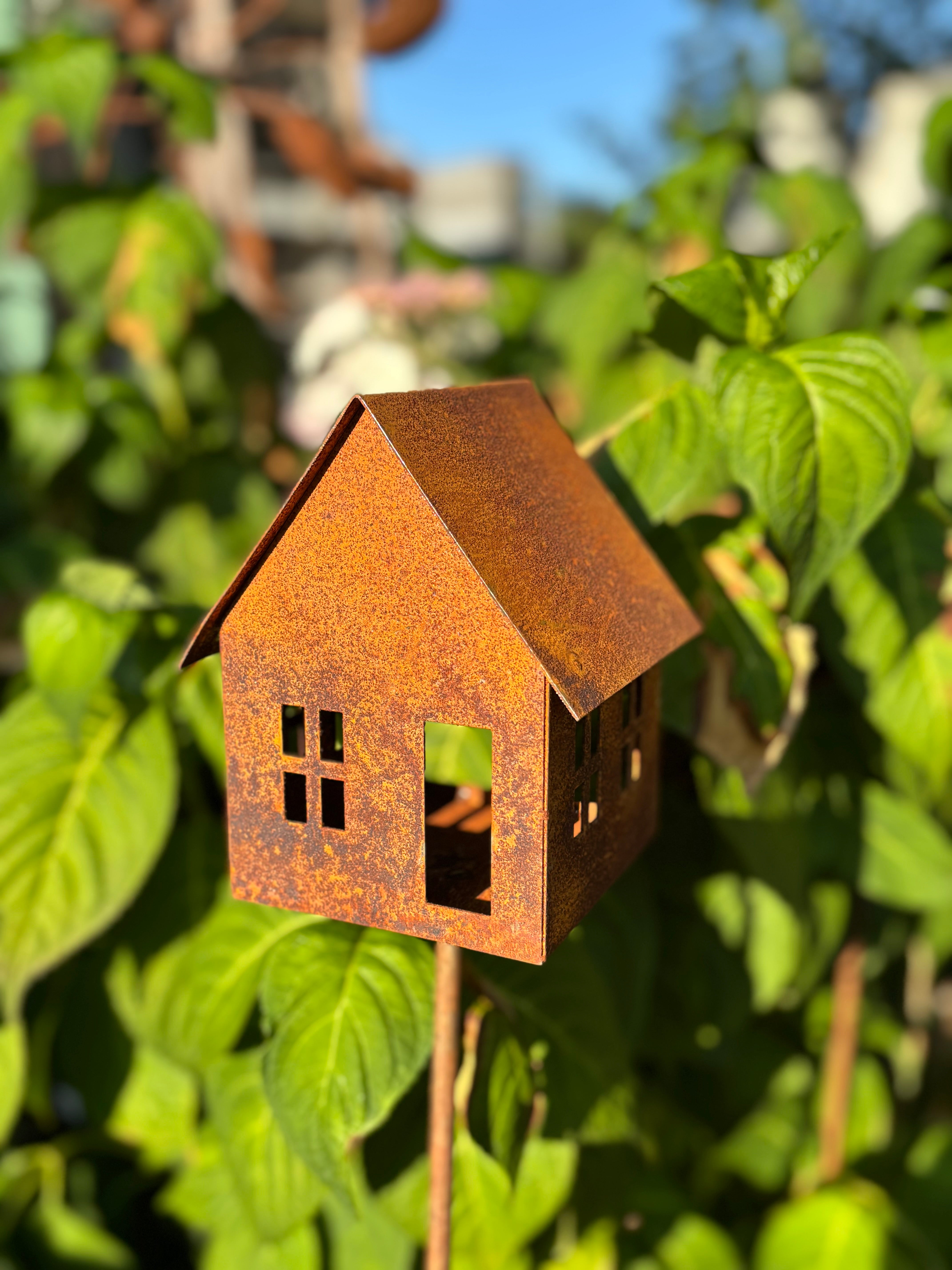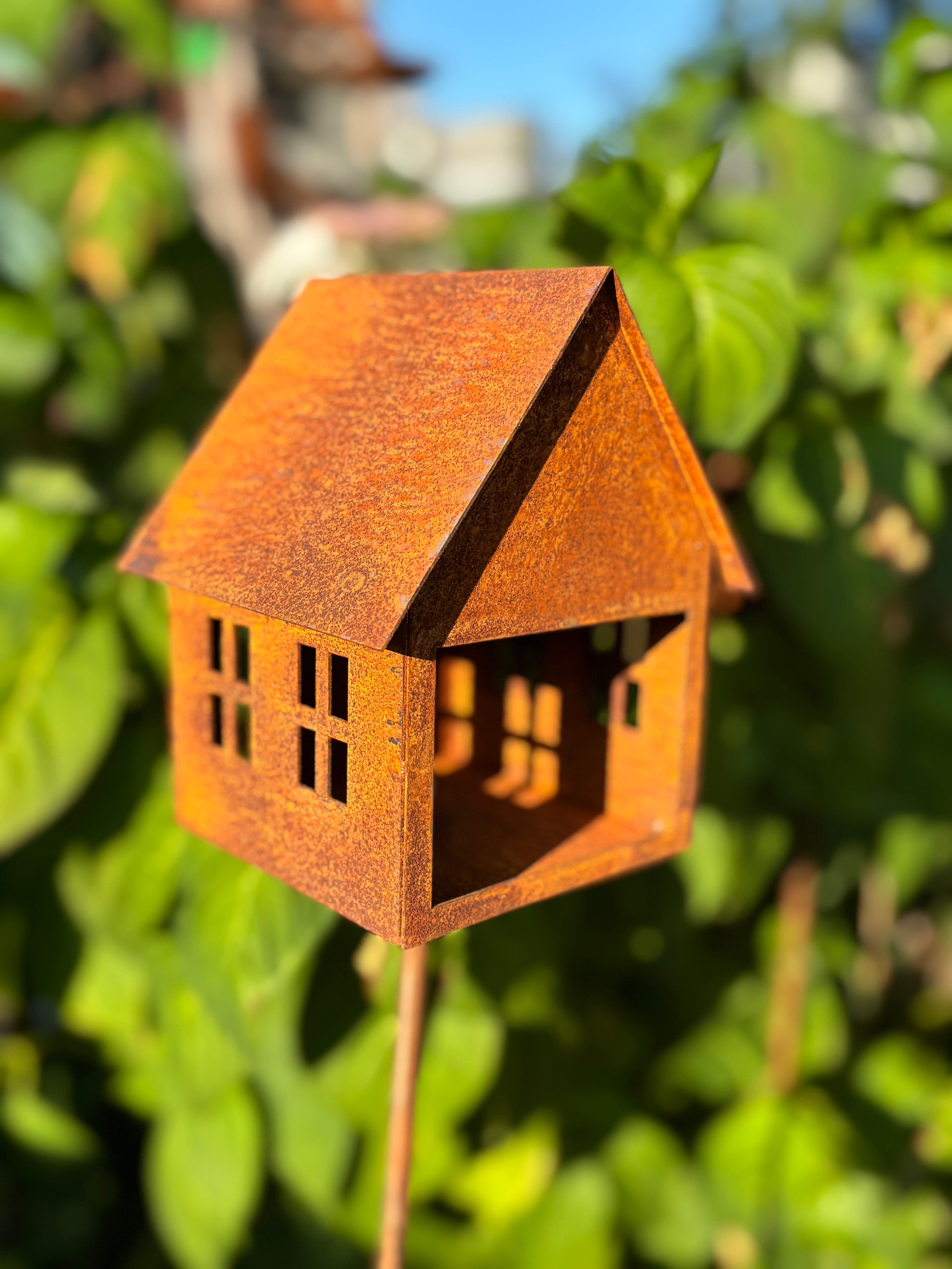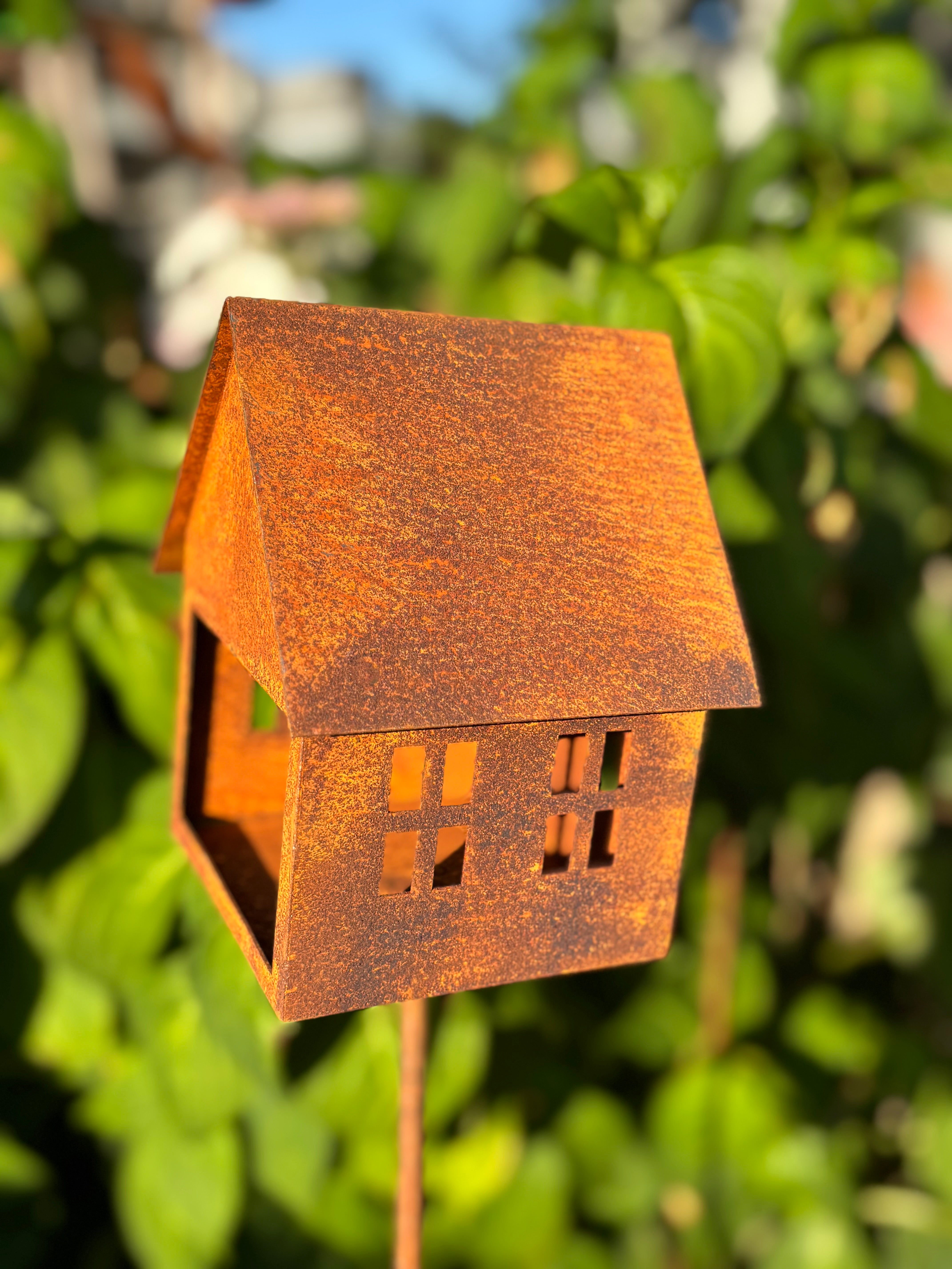 Wat een geweldig vogelvoeder huis in ecoroest op losse pin.